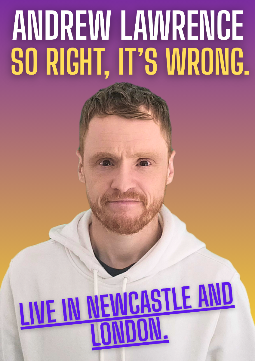 If you want to see Andrew Lawrence live, he arrives in Newcastle on 29th October and London on 11th January with his all-new stand-up show on, full of the sort of jokes that might bring the police to his front door in full riot gear.